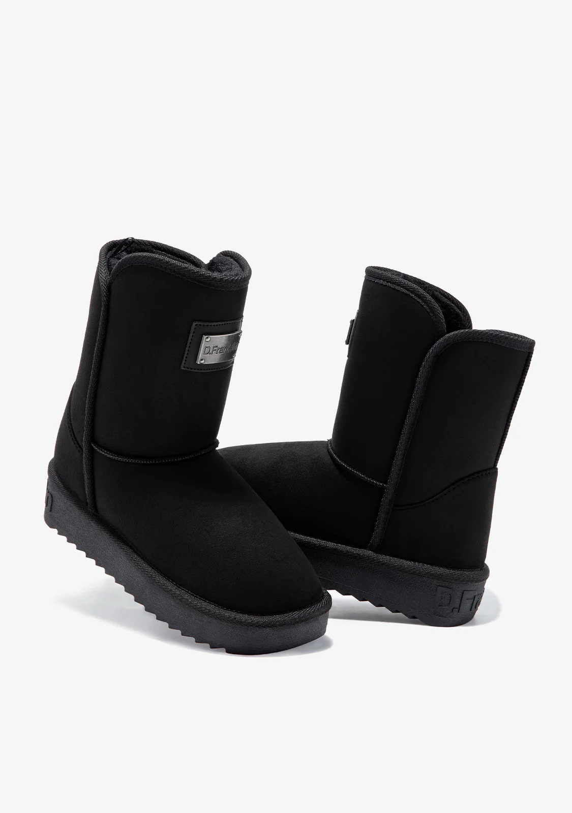These low-cut black boots feature high-quality water-repellent microfiber fabric. The redesigned sole provides a lighter weight for a more comfortable ride. It also features our custom heel badge and contrasting sole. In addition, its synthetic fur lining gives it the ultimate winter touch.Â