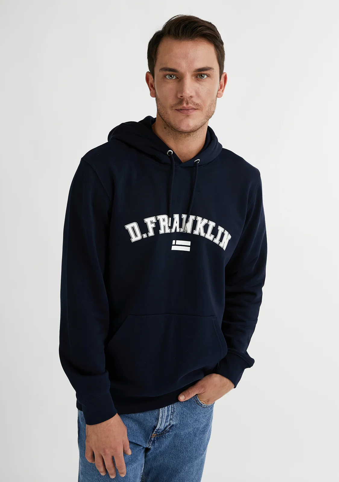 Join the D.Franklin style with our latest collection of sweatshirts. Characterised by their simplicity, they are the perfect combination of the most basic colours and the application of a central logo. The Varsity Hoodie Navy / White is made from the finest materials for breathability, stretch and comfort.